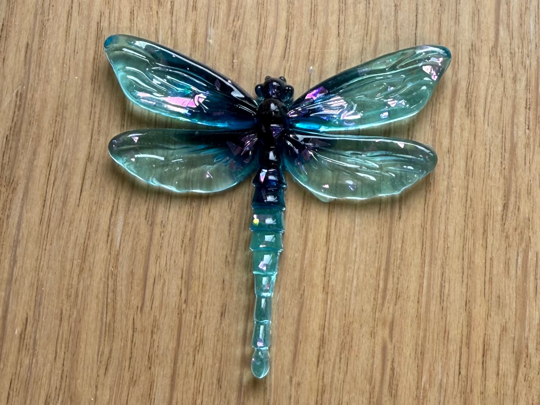 Libelle - 45 mm transparant turquoise; per stuk