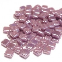 50 gram (circa 85 steentjes) steentjes gemaakt van gerecylced glas en gekleurd met natuurlijke mineralen en kleur-oxidaten. Voorbeelden van kleur-oxidaten zijn roest (geoxideerd ijzer) en patina (geoxideerd koper).  Het geiridiseerd parelmoer oppervlak is glad en egaal en reflecteert het licht voor een levendige kleur. Door de brede selectie aan kleuren maakt dit een perfecte keuze voor mozaïek.