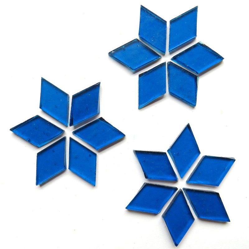 De ruitvormige glasstukjes van 25×15 mm hebben een standaard dikte van 3 mm en zijn geschikt voor zowel binnen- als buitengebruik. Het UVA- en vorstbestendige glas behoudt zijn kleur en glans, zelfs onder wisselende weersomstandigheden.